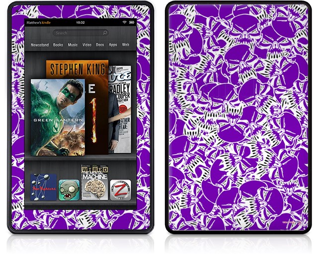 Amazon Kindle Fire (Original) Decal Style Skin - Scattered Skulls Purple