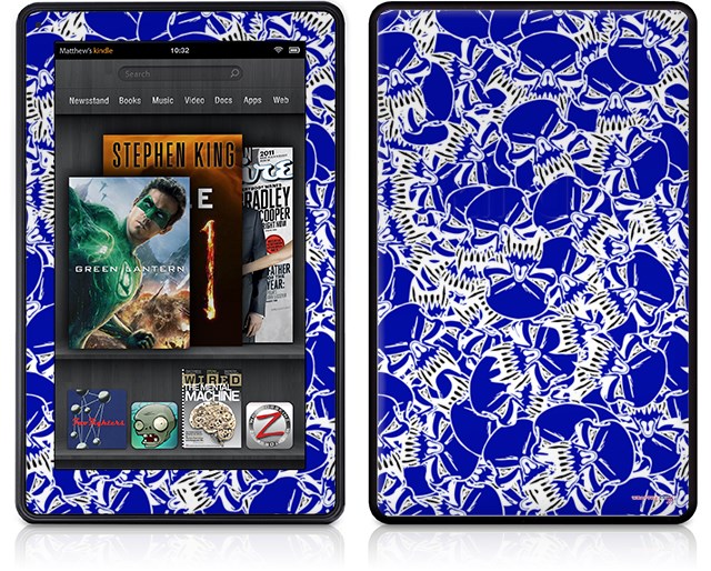 Amazon Kindle Fire (Original) Decal Style Skin - Scattered Skulls Royal Blue