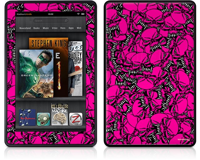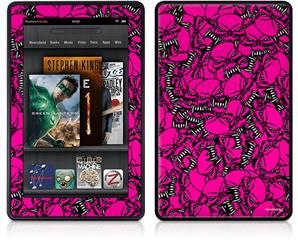 Amazon Kindle Fire (Original) Decal Style Skin - Scattered Skulls Hot Pink