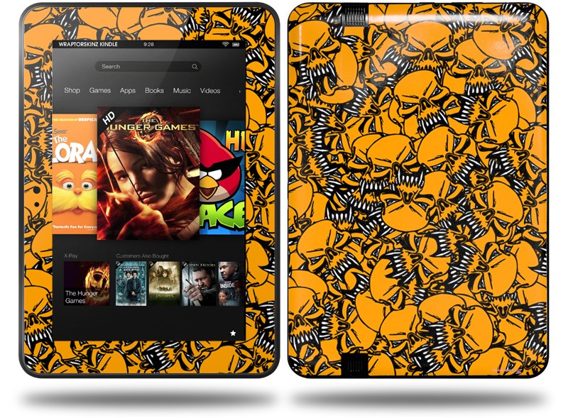 Scattered Skulls Orange Decal Style Skin fits Amazon Kindle Fire HD 8.9 inch