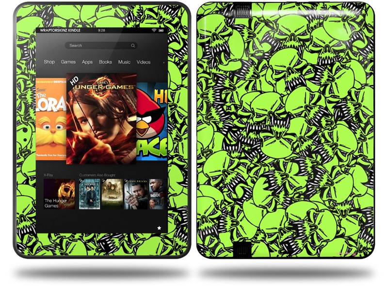 Scattered Skulls Neon Green Decal Style Skin fits Amazon Kindle Fire HD 8.9 inch