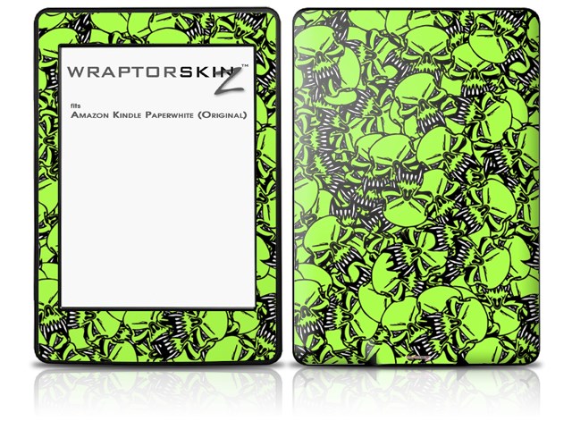 Scattered Skulls Neon Green - Decal Style Skin fits Amazon Kindle Paperwhite (Original)
