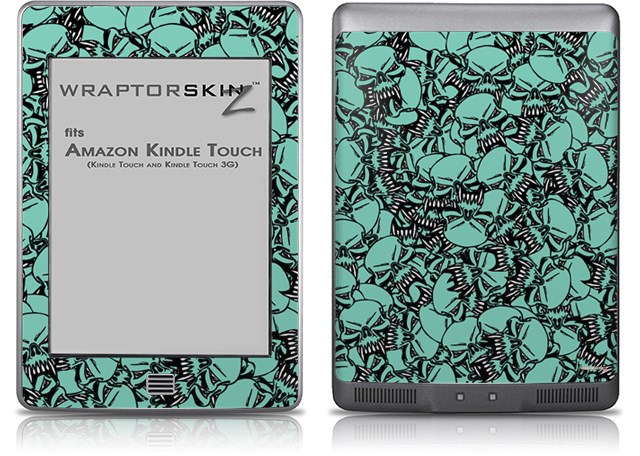 Scattered Skulls Seafoam Green - Decal Style Skin (fits Amazon Kindle Touch Skin)