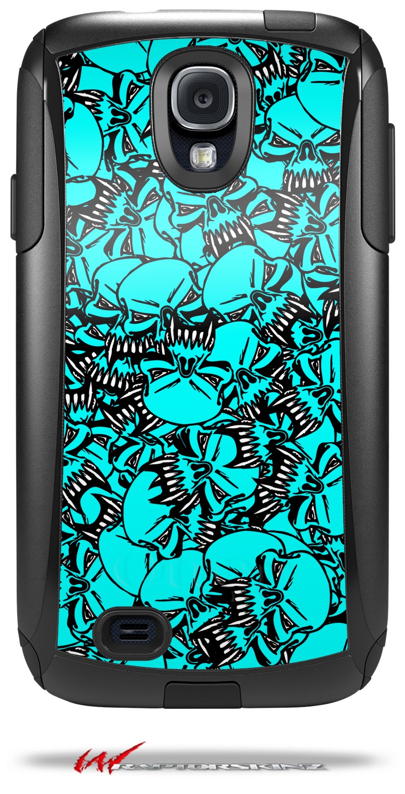 Scattered Skulls Neon Teal - Decal Style Vinyl Skin fits Otterbox Commuter Case for Samsung Galaxy S4 (CASE SOLD SEPARATELY)