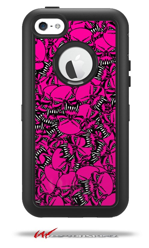 Scattered Skulls Hot Pink - Decal Style Vinyl Skin fits Otterbox Defender iPhone 5C Case (CASE SOLD SEPARATELY)
