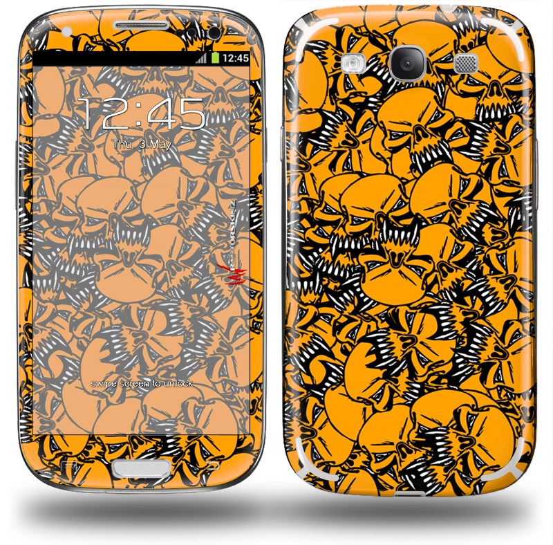 Scattered Skulls Orange - Decal Style Skin (fits Samsung Galaxy S III S3)