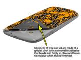 WraptorSkinz® are self adhering vinyl skins that help prevent scratches and look great doing it. Unlike bulky silicon, plastic or metal cases and faceplates, WraptorSkinz® are designed to be thin and very tough. WraptorSkinz® are a composite of two layers of commercial grade materials. The bottom layer is a soft, flexible vinyl with a special removable adhesive that is easily positioned, applied without air bubbles, and effortlessly removed without leaving a sticky residue. Next we print the bottom layer with UV protected, fade resistant inks that deliver superb photo quality designs in vibrant colors. Finally we bond a professional grade laminate over the entire skin adding a glossy protective finish.