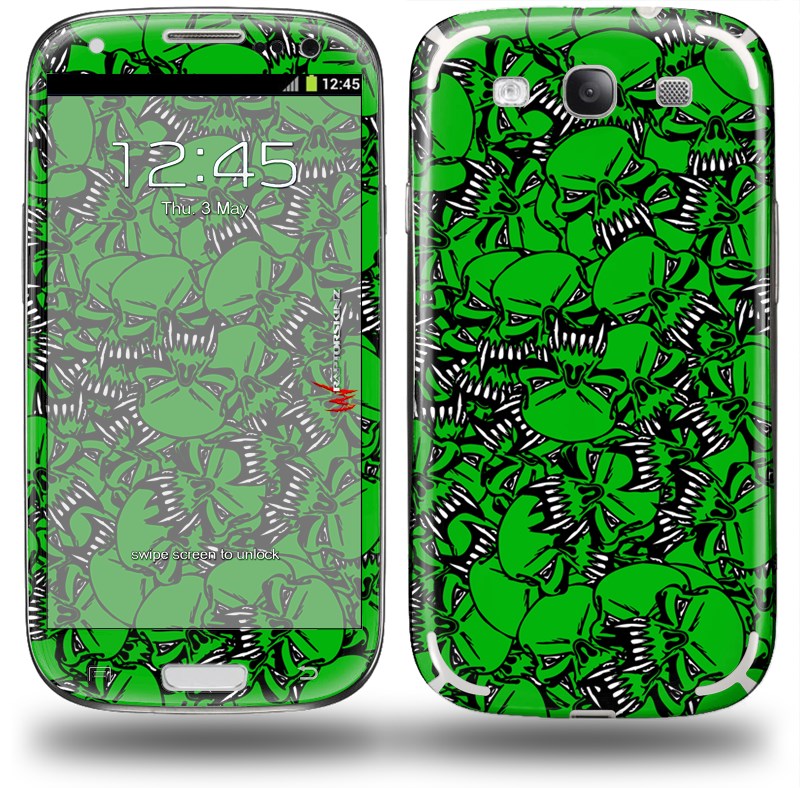Scattered Skulls Green - Decal Style Skin (fits Samsung Galaxy S III S3)