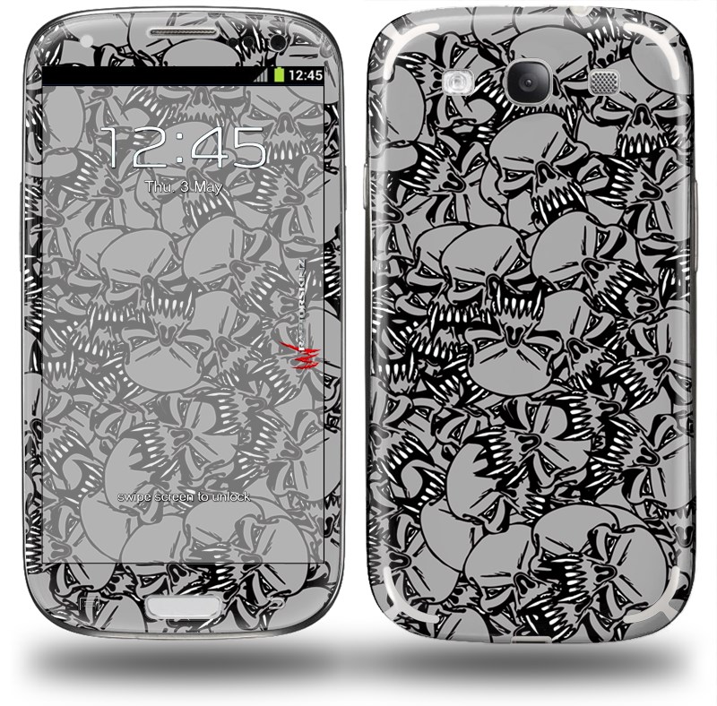 Scattered Skulls Gray - Decal Style Skin (fits Samsung Galaxy S III S3)