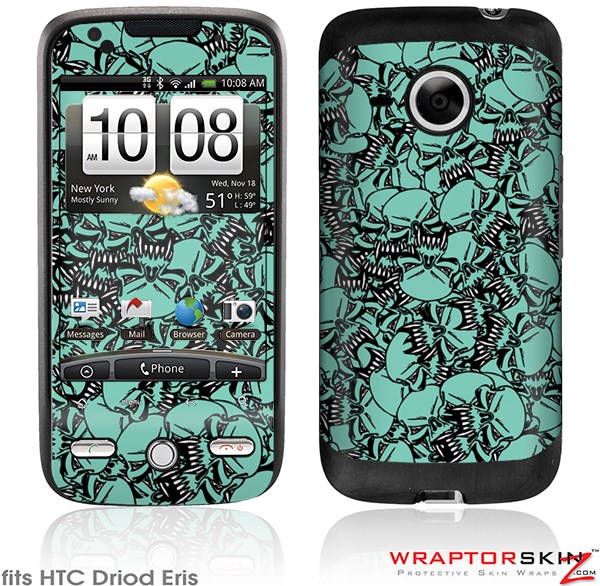 HTC Droid Eris Skin Scattered Skulls Seafoam Green