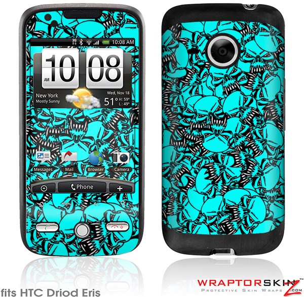 HTC Droid Eris Skin Scattered Skulls Neon Teal