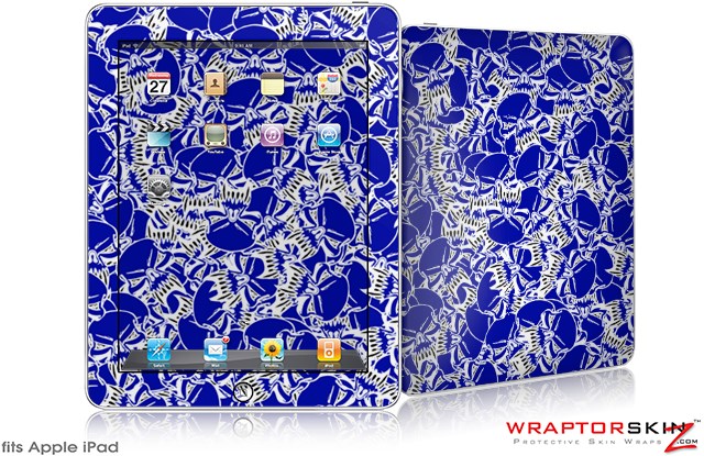 iPad Skin Scattered Skulls Royal Blue