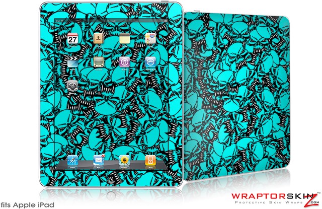 iPad Skin Scattered Skulls Neon Teal