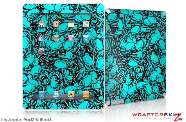 iPad Skin Scattered Skulls Neon Teal (fits iPad 2 through iPad 4)