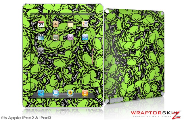 iPad Skin Scattered Skulls Neon Green (fits iPad 2 through iPad 4)