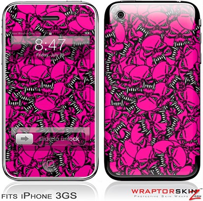 iPhone 3GS Decal Style Skin - Scattered Skulls Hot Pink