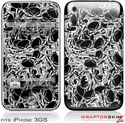 iPhone 3GS Decal Style Skin - Scattered Skulls Black