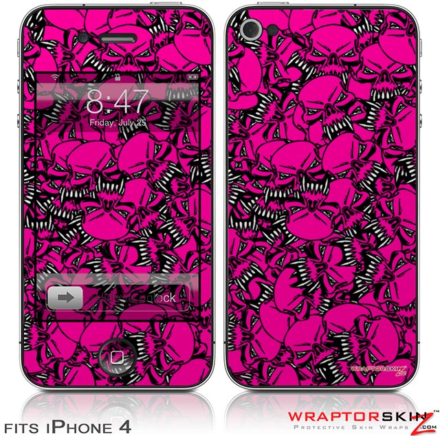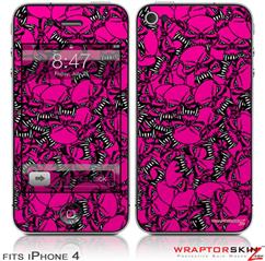 iPhone 4 Skin Scattered Skulls Hot Pink