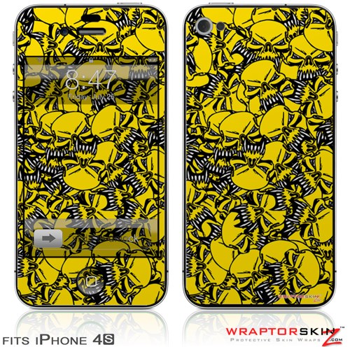 iPhone 4S Skin Scattered Skulls Yellow