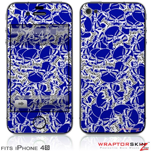 iPhone 4S Skin Scattered Skulls Royal Blue