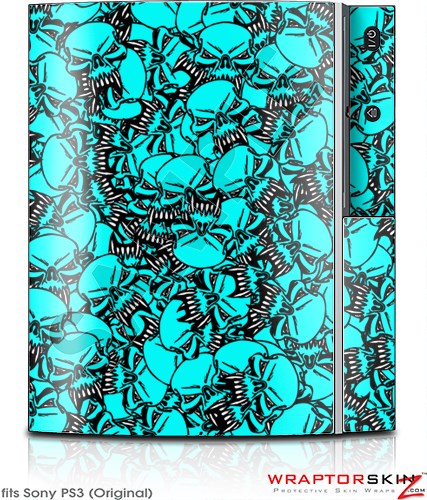Sony PS3 Skin Scattered Skulls Neon Teal