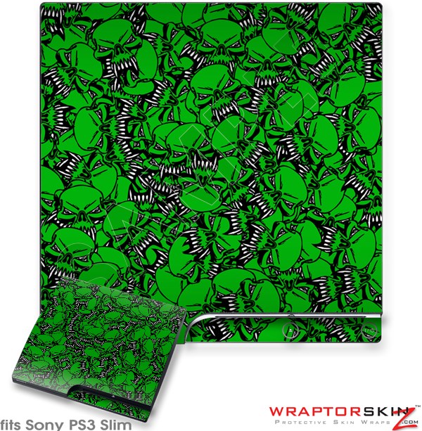 Sony PS3 Slim Skin Scattered Skulls Green