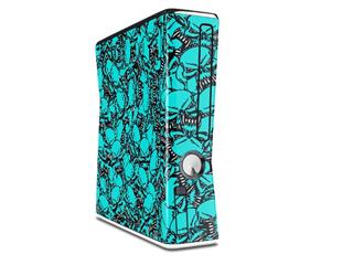 Scattered Skulls Neon Teal Decal Style Skin for XBOX 360 Slim Vertical