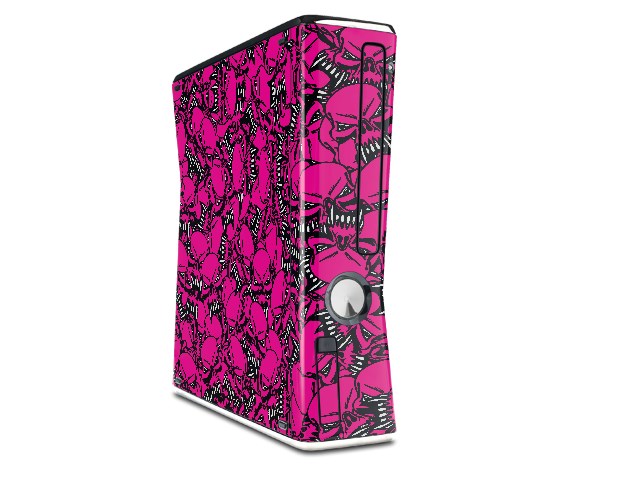 Scattered Skulls Hot Pink Decal Style Skin for XBOX 360 Slim Vertical