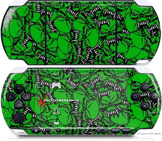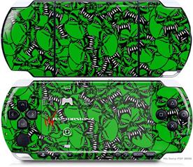 Sony PSP 3000 Decal Style Skin - Scattered Skulls Green
