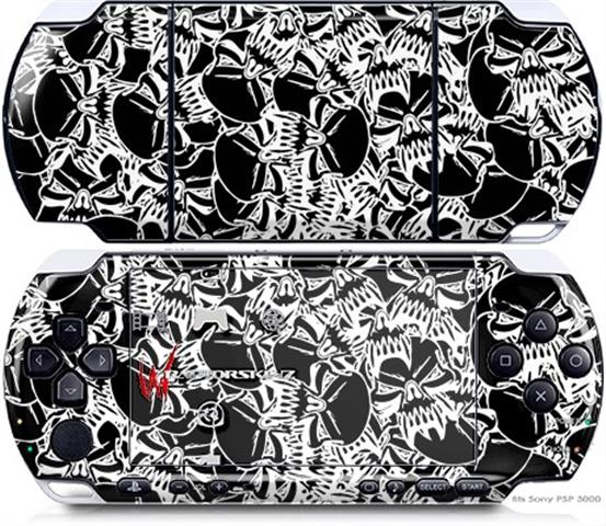 Sony PSP 3000 Decal Style Skin - Scattered Skulls Black