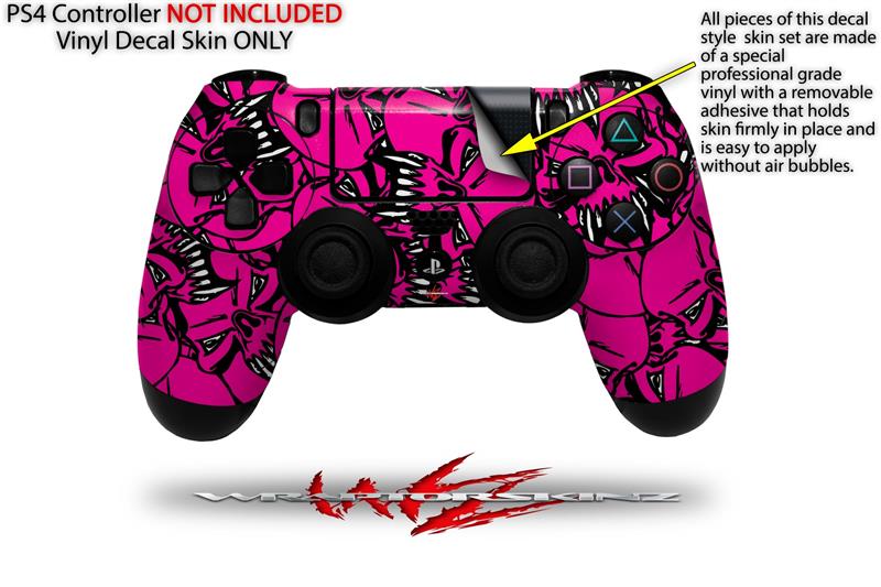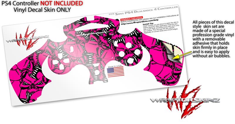 WraptorSkinz Skin compatible with Sony PS4 Dualshock Controller PlayStation 4 Original Slim and Pro Scattered Skulls Hot Pink (CONTROLLER NOT INCLUDED)