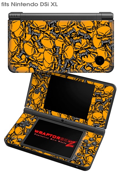 Nintendo DSi XL Skin Scattered Skulls Orange