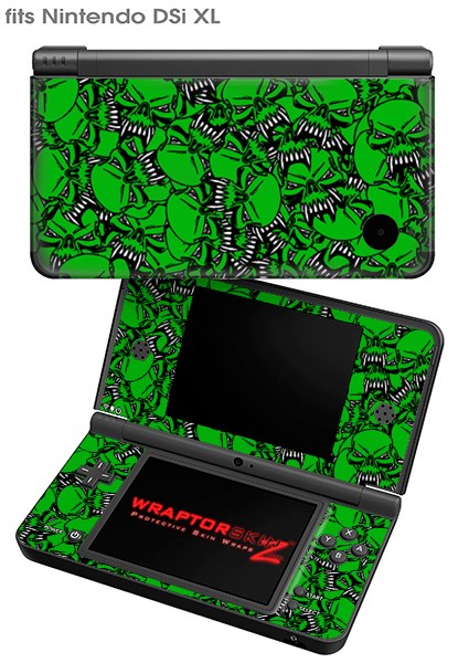 Nintendo DSi XL Skin Scattered Skulls Green