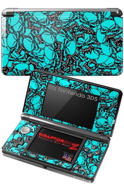 Nintendo 3DS Decal Style Skin - Scattered Skulls Neon Teal
