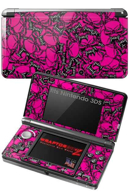 Nintendo 3DS Decal Style Skin - Scattered Skulls Hot Pink