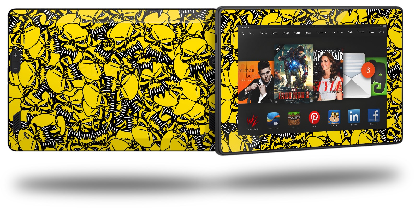 Scattered Skulls Yellow - Decal Style Skin fits 2013 Amazon Kindle Fire HD 7 inch