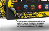 WraptorSkinz™ are self adhering vinyl skins that help prevent scratches and look great doing it. Unlike bulky silicon and plastic covers, WraptorSkinz are designed to be thin and very tough. WraptorSkinz are a composite of two layers of commercial grade materials. The bottom layer is a soft, flexible vinyl with a special removable adhesive that is easily positioned and applied without air bubbles. The bottom layer print with special UV protected, fade resistant inks that deliver superb photo quality designs in vibrant colors. Finally we bond a professional grade laminate over the entire skin adding a glossy protective finish.