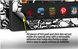 WraptorSkinz™ are self adhering vinyl skins that help prevent scratches and look great doing it. Unlike bulky silicon and plastic covers, WraptorSkinz are designed to be thin and very tough. WraptorSkinz are a composite of two layers of commercial grade materials. The bottom layer is a soft, flexible vinyl with a special removable adhesive that is easily positioned and applied without air bubbles. The bottom layer print with special UV protected, fade resistant inks that deliver superb photo quality designs in vibrant colors. Finally we bond a professional grade laminate over the entire skin adding a glossy protective finish.