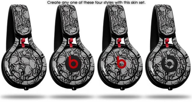 Skin Decal Wrap works with Beats Mixr Headphones Scattered Skulls Gray Skin Only (HEADPHONES NOT INCLUDED)