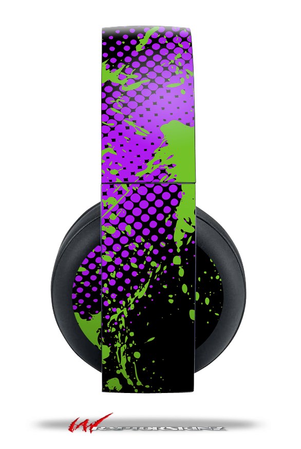Vinyl Decal Skin Wrap compatible with Original Sony PlayStation 4 Gold Wireless Headphones Halftone Splatter Green Purple (PS4 HEADPHONES NOT INCLUDED)