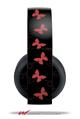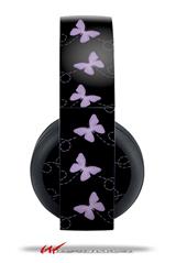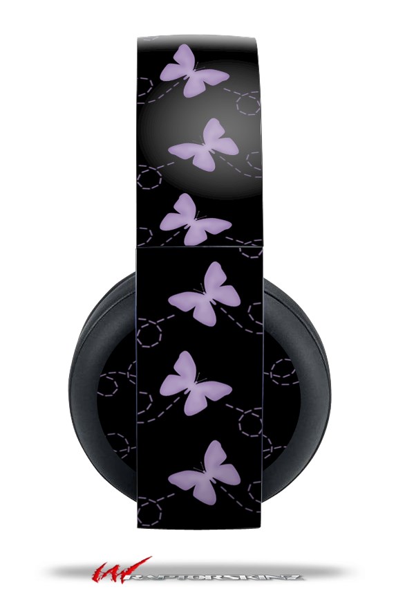 Vinyl Decal Skin Wrap compatible with Original Sony PlayStation 4 Gold Wireless Headphones Pastel Butterflies Purple on Black (PS4 HEADPHONES NOT INCLUDED)