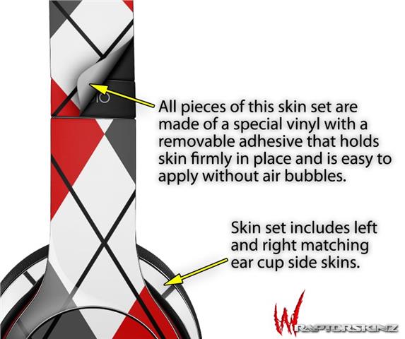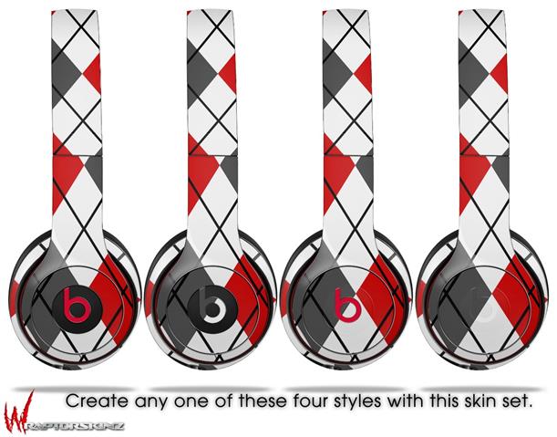 WraptorSkinz Skin Decal Wrap compatible with Beats Solo 2 WIRED Headphones Argyle Red and Gray Skin Only (HEADPHONES NOT INCLUDED)