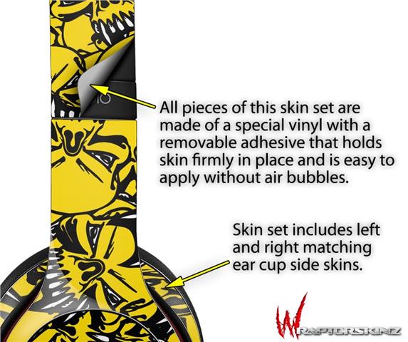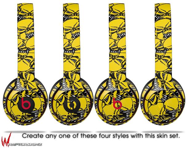 WraptorSkinz Skin Decal Wrap compatible with Beats Solo 2 WIRED Headphones Scattered Skulls Yellow Skin Only (HEADPHONES NOT INCLUDED)