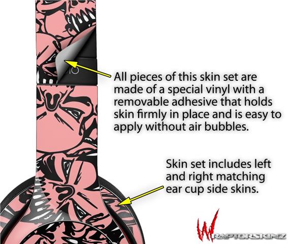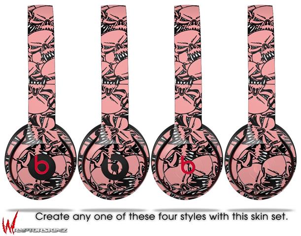 WraptorSkinz Skin Decal Wrap compatible with Beats Solo 2 WIRED Headphones Scattered Skulls Pink Skin Only (HEADPHONES NOT INCLUDED)