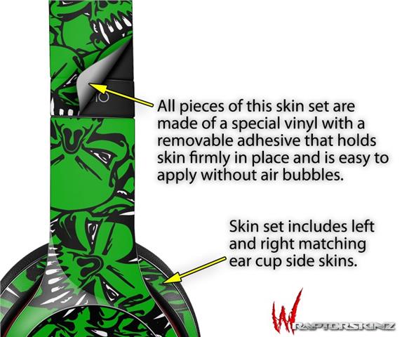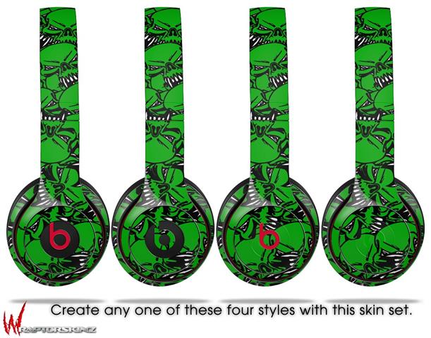 WraptorSkinz Skin Decal Wrap compatible with Beats Solo 2 WIRED Headphones Scattered Skulls Green Skin Only (HEADPHONES NOT INCLUDED)
