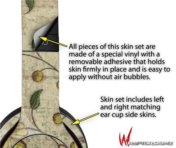 WraptorSkinz Skin Decal Wrap compatible with Beats Solo 2 WIRED Headphones Flowers and Berries Yellow Skin Only (HEADPHONES NOT INCLUDED)