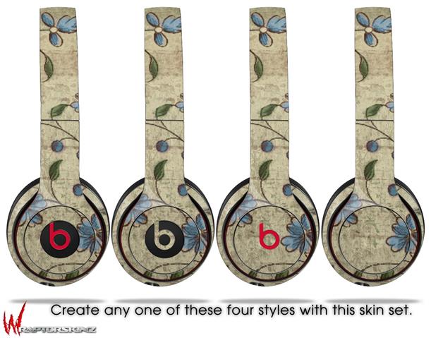 WraptorSkinz Skin Decal Wrap compatible with Beats Solo 2 WIRED Headphones Flowers and Berries Blue Skin Only (HEADPHONES NOT INCLUDED)
