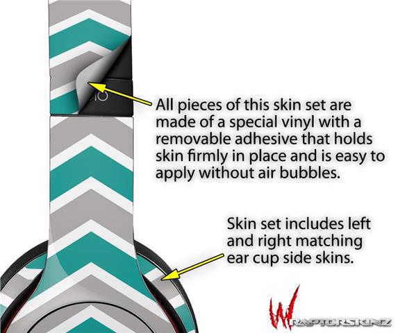 WraptorSkinz Skin Decal Wrap compatible with Beats Solo 2 WIRED Headphones Zig Zag Teal and Gray Skin Only (HEADPHONES NOT INCLUDED)