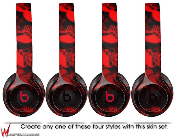 WraptorSkinz Skin Decal Wrap compatible with Beats Solo 2 WIRED Headphones Skulls Confetti Red Skin Only (HEADPHONES NOT INCLUDED)