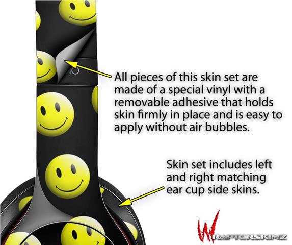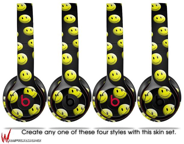 WraptorSkinz Skin Decal Wrap compatible with Beats Solo 2 WIRED Headphones Smileys on Black Skin Only (HEADPHONES NOT INCLUDED)